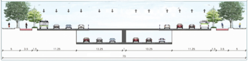 绿城路下穿开州路隧道节点西起昆吾路,东至振兴路,为下穿开州路而设。道路红线宽度70米,全长1060米,其中隧道暗埋段(含镂空段)长260米、引坡敞口段长542米、隧道顺接段长258米。绿城路下穿京开大道隧道节点,西起澶水路,东至里商路,为下穿京开大道而设,道路红线宽度70米,全长1153米,其中隧道暗埋段(含镂空段)长260米、引坡敞口段长500米、隧道顺接段长393米。该段项目竣工通车隧道标准段采用地下双向六车道+地面双向六车道、地面交叉口处双向八车道通行,将大大缓解交通拥堵和提升该路段的通行时速,成为名副其实直达高铁站的快速路。